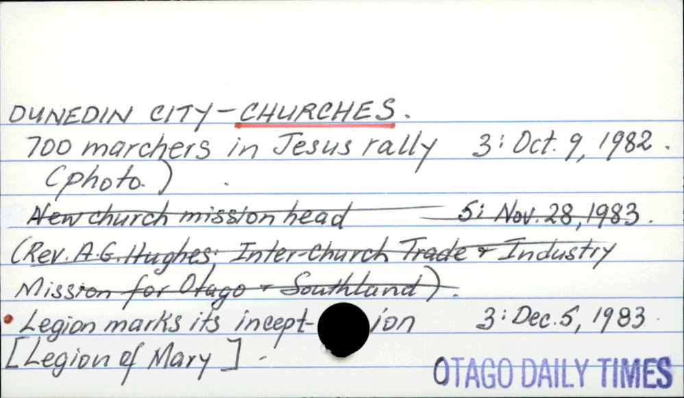 Dunedin Public Libraries (20th Oct 2016). DUNEDIN CITY - CHURCHES.. In Website Dunedin Public Libraries. Retrieved 2nd Apr 2026 21:50, from https://dunedin.recollect.co.nz/nodes/view/41161