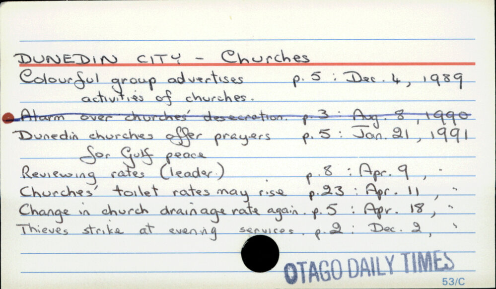 Dunedin Public Libraries (19th Oct 2016). DUNEDIN CITY - Churches. In Website Dunedin Public Libraries. Retrieved 2nd Apr 2026 21:49, from https://dunedin.recollect.co.nz/nodes/view/41168