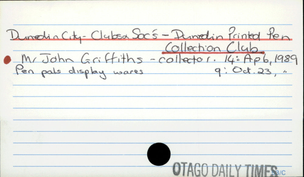 Dunedin Public Libraries (5th Nov 2016). Dunedin City - Clubs & Soc's - Dunedin Printed Pen Collection Club. In Website Dunedin Public Libraries. Retrieved 27th Apr 2026 17:43, from https://dunedin.recollect.co.nz/nodes/view/42014