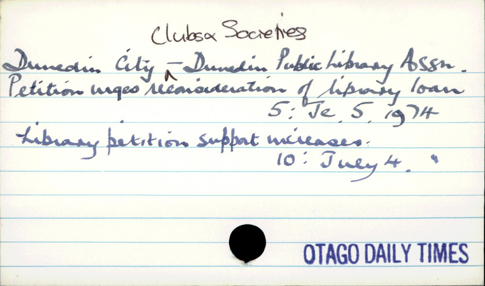 Dunedin City - Clubs & Societies - Dunedin Public Library Assn.
