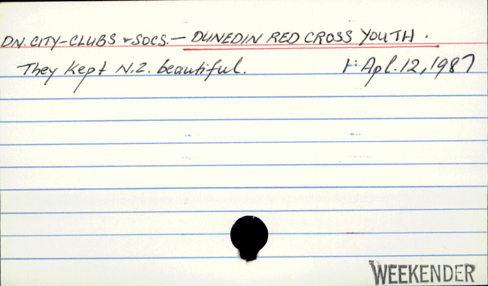 Dunedin Public Libraries (5th Nov 2016). DN. CITY - CLUBS & SOCS. - DUNEDIN RED CROSS YOUTH. . In Website Dunedin Public Libraries. Retrieved 27th Apr 2026 17:44, from https://dunedin.recollect.co.nz/nodes/view/42022