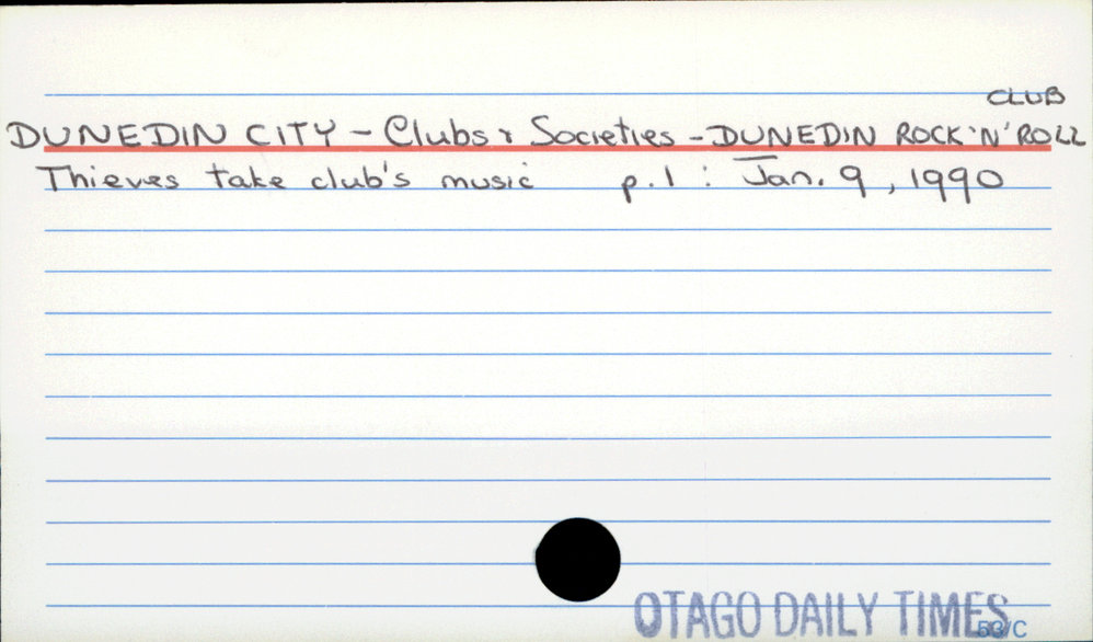 DUNEDIN CITY - Clubs & Societies - DUNEDIN ROCK 'N' ROLLCLUB