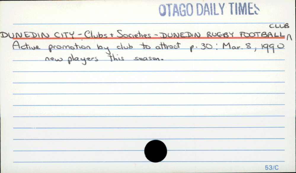 DUNEDIN CITY - Clubs Societies - DUNEDIN RUGBY FOOTBALL CLUB