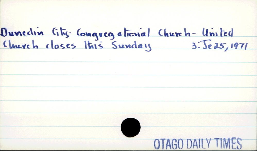 Dunedin Public Libraries (14th Nov 2016). Dunedin City - Congregational Church - United. In Website Dunedin Public Libraries. Retrieved 5th Apr 2026 18:21, from https://dunedin.recollect.co.nz/nodes/view/42943