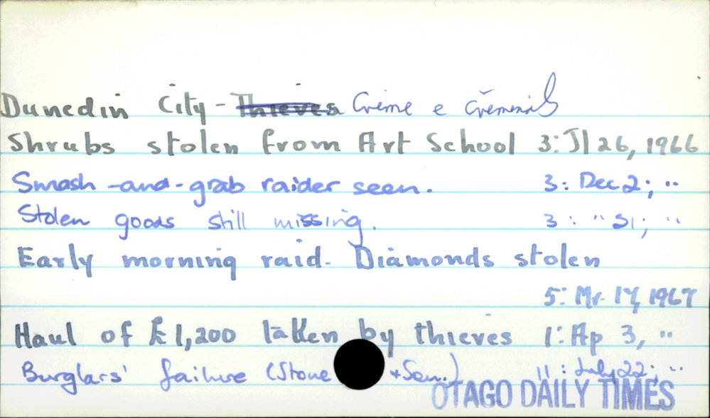 Dunedin Public Libraries (21st Nov 2016). Dunedin City - Crime & Criminals. In Website Dunedin Public Libraries. Retrieved 27th Mar 2026 15:11, from https://dunedin.recollect.co.nz/nodes/view/43893