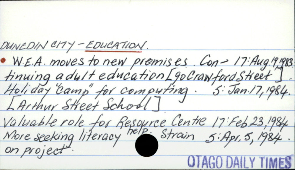 Dunedin Public Libraries (2nd Dec 2016). DUNEDIN CITY - EDUCATION.. In Website Dunedin Public Libraries. Retrieved 2nd Apr 2026 08:38, from https://dunedin.recollect.co.nz/nodes/view/44802