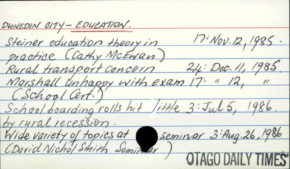 Dunedin Public Libraries (2nd Dec 2016). DUNEDIN CITY - EDUCATION.. In Website Dunedin Public Libraries. Retrieved 2nd Apr 2026 10:27, from https://dunedin.recollect.co.nz/nodes/view/44806