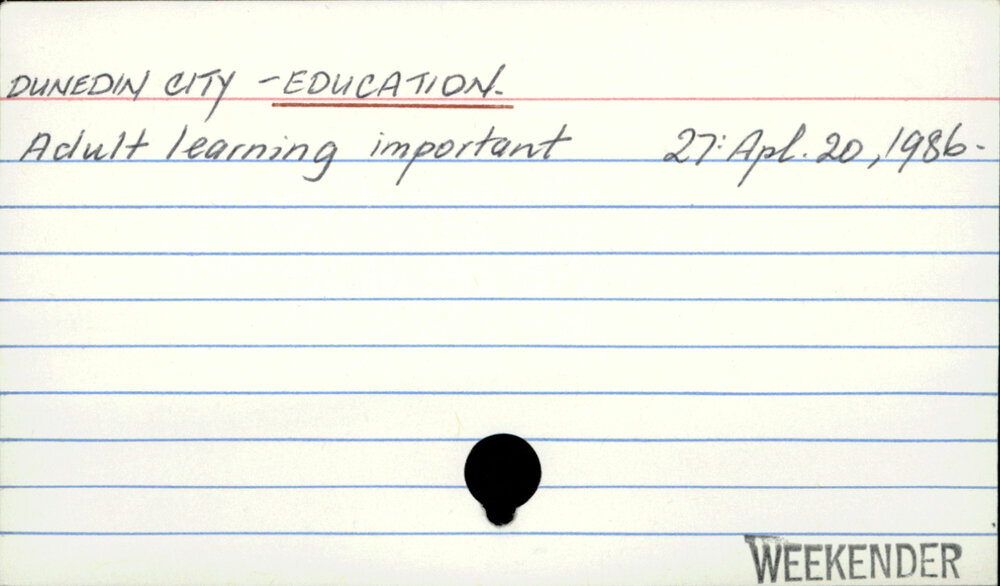 Dunedin Public Libraries (1st Dec 2016). DUNEDIN CITY - EDUCATION.. In Website Dunedin Public Libraries. Retrieved 2nd Apr 2026 10:35, from https://dunedin.recollect.co.nz/nodes/view/44810