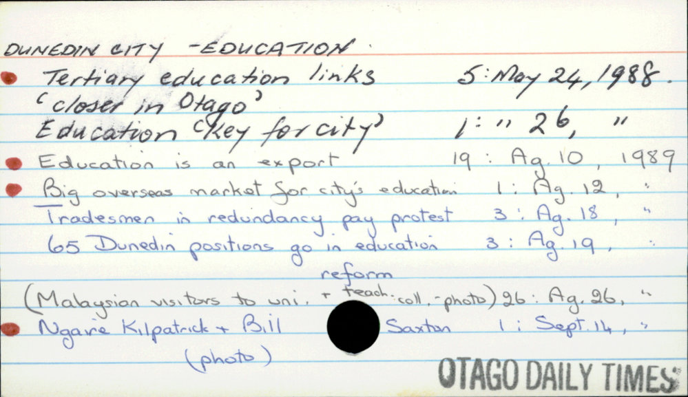 Dunedin Public Libraries (1st Dec 2016). DUNEDIN CITY - EDUCATION.. In Website Dunedin Public Libraries. Retrieved 2nd Apr 2026 10:27, from https://dunedin.recollect.co.nz/nodes/view/44811