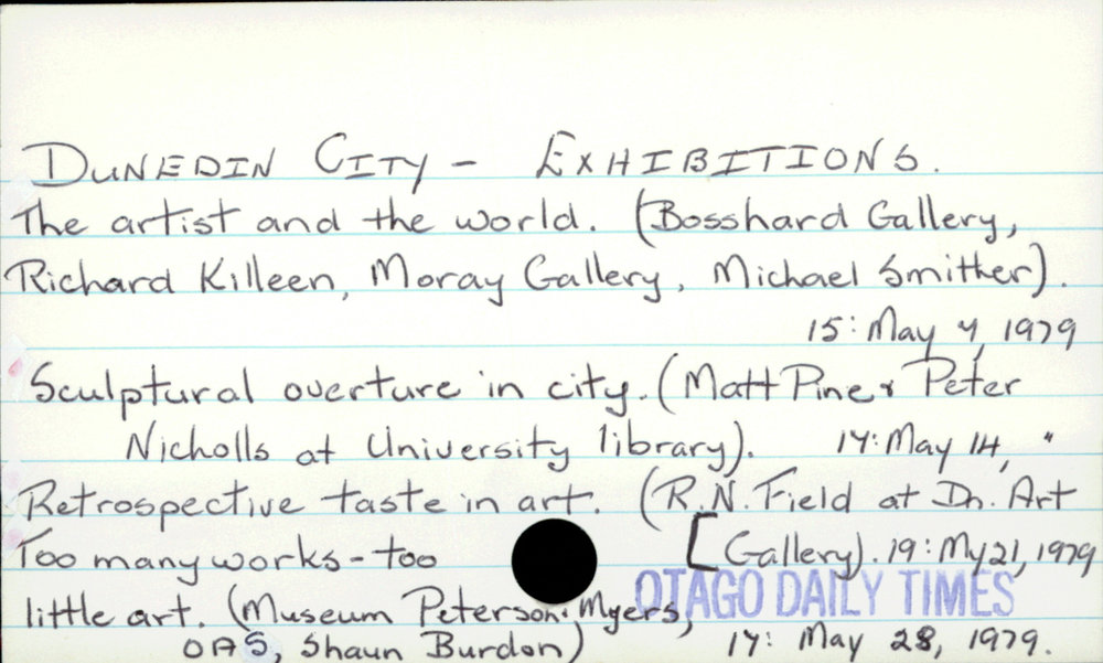 Dunedin Public Libraries (15th Dec 2016). Dunedin City - Exhibitions. In Website Dunedin Public Libraries. Retrieved 27th Mar 2026 15:14, from https://dunedin.recollect.co.nz/nodes/view/45685