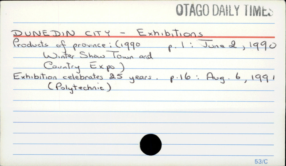 Dunedin Public Libraries (10th Dec 2016). Dunedin City - Exhibitions. In Website Dunedin Public Libraries. Retrieved 27th Mar 2026 15:14, from https://dunedin.recollect.co.nz/nodes/view/45700