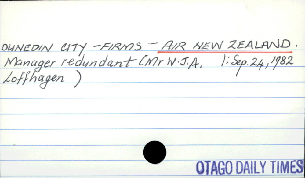 Dunedin Public Libraries (20th Dec 2016). DUNEDIN CITY - FIRMS - AIR NEW ZEALAND.. In Website Dunedin Public Libraries. Retrieved 4th Apr 2026 00:52, from https://dunedin.recollect.co.nz/nodes/view/46591