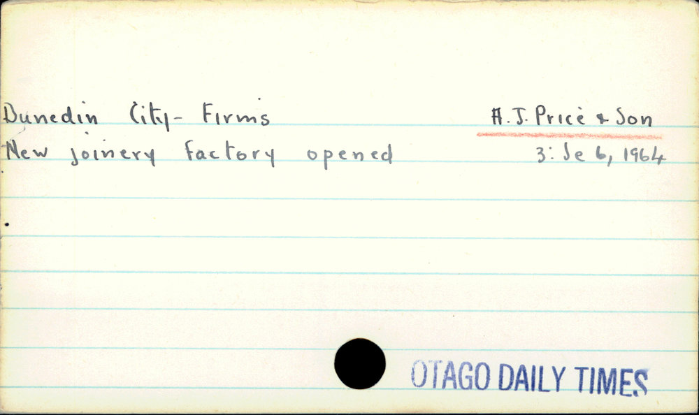 Dunedin Public Libraries (20th Dec 2016). Dunedin City - Firms - A.J. Price & Son. In Website Dunedin Public Libraries. Retrieved 4th Apr 2026 00:49, from https://dunedin.recollect.co.nz/nodes/view/46594