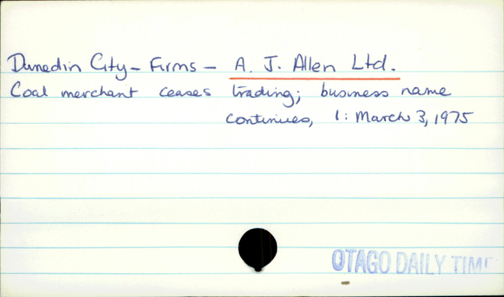 Dunedin Public Libraries (20th Dec 2016). Dunedin City - Firms - A.J. Allen Ltd.. In Website Dunedin Public Libraries. Retrieved 4th Apr 2026 00:45, from https://dunedin.recollect.co.nz/nodes/view/46598