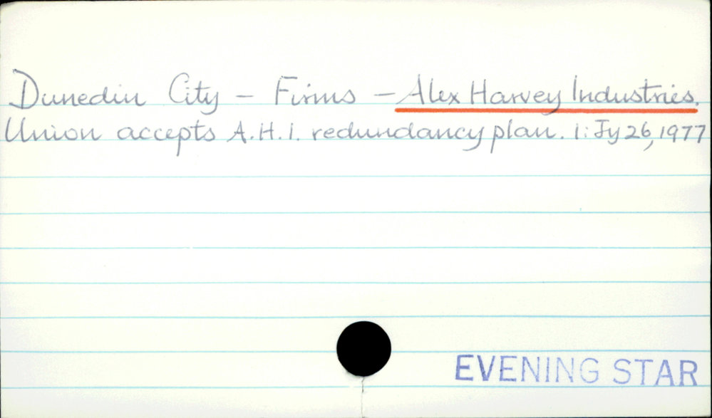 Dunedin Public Libraries (19th Dec 2016). Dunedin City - Firms - Alex Harvey Industries. In Website Dunedin Public Libraries. Retrieved 4th Apr 2026 00:41, from https://dunedin.recollect.co.nz/nodes/view/46603