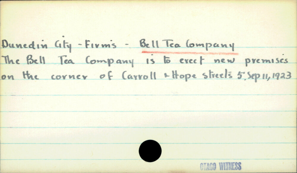 Dunedin Public Libraries (26th Jun 2016). Dunedin City - Firms - Bell Tea Company. In Website Dunedin Public Libraries. Retrieved 15th Apr 2026 08:43, from https://dunedin.recollect.co.nz/nodes/view/46779