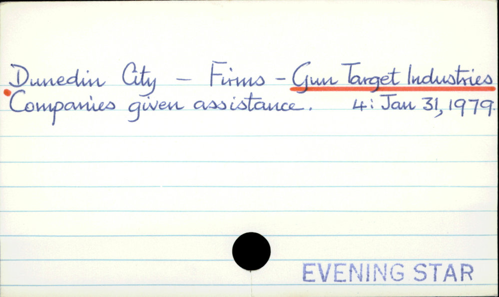 Dunedin Public Libraries (19th Jul 2016). Dunedin City - Firms - Gun Target Industries. In Website Dunedin Public Libraries. Retrieved 2nd Apr 2026 16:41, from https://dunedin.recollect.co.nz/nodes/view/47568