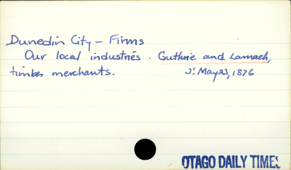 Dunedin Public Libraries (21st Jul 2016). Dunedin City - Firms - Guthrie and Larnach. In Website Dunedin Public Libraries. Retrieved 2nd Apr 2026 16:31, from https://dunedin.recollect.co.nz/nodes/view/47575
