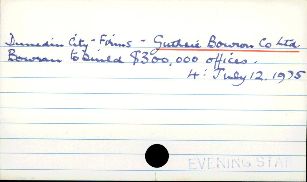 Dunedin Public Libraries (21st Jul 2016). Dunedin City - Firms - Guthrie Bowron and Co Ltd. In Website Dunedin Public Libraries. Retrieved 2nd Apr 2026 16:31, from https://dunedin.recollect.co.nz/nodes/view/47579