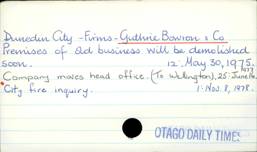 Dunedin Public Libraries (21st Jul 2016). Dunedin City - Firms - Guthrie Bowron & Co. In Website Dunedin Public Libraries. Retrieved 2nd Apr 2026 16:31, from https://dunedin.recollect.co.nz/nodes/view/47583