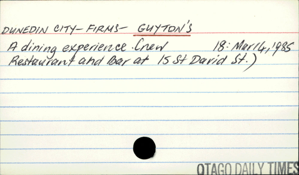 Dunedin Public Libraries (21st Jul 2016). Dunedin City - Firms - Guyton's. In Website Dunedin Public Libraries. Retrieved 2nd Apr 2026 16:31, from https://dunedin.recollect.co.nz/nodes/view/47584