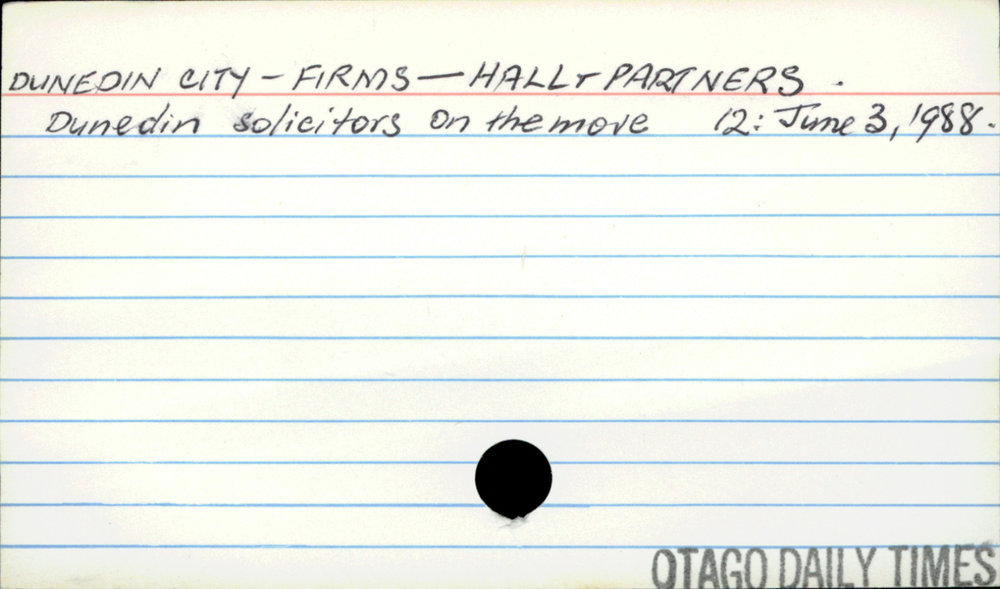 Dunedin Public Libraries (19th Jul 2016). Dunedin City - Firms - Hall & Partners. In Website Dunedin Public Libraries. Retrieved 2nd Apr 2026 16:37, from https://dunedin.recollect.co.nz/nodes/view/47589