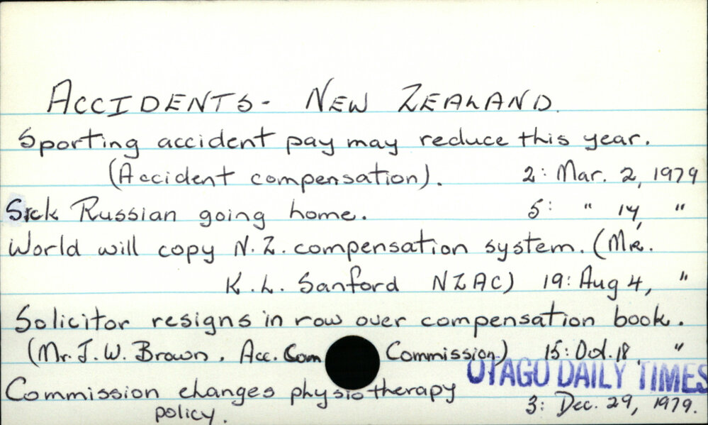 Dunedin Public Libraries (25th May 2018). ACCIDENTS - NEW ZEALAND . In Website Dunedin Public Libraries. Retrieved 4th Apr 2026 05:56, from https://dunedin.recollect.co.nz/nodes/view/481