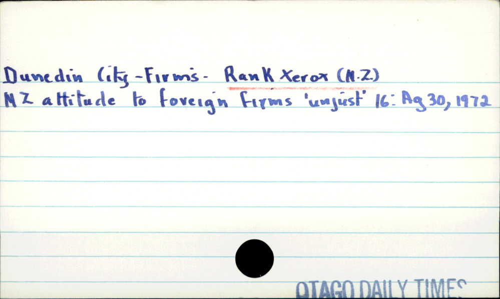 Dunedin Public Libraries (6th Jan 2017). Dunedin City - Firms - Rank Xerox (N.Z.). In Website Dunedin Public Libraries. Retrieved 2nd Apr 2026 14:11, from https://dunedin.recollect.co.nz/nodes/view/48568