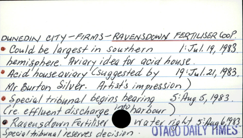 Dunedin Public Libraries (7th Jan 2017). Dunedin City - Firms - Ravensdown Fertiliser Co-op. In Website Dunedin Public Libraries. Retrieved 2nd Apr 2026 14:11, from https://dunedin.recollect.co.nz/nodes/view/48571