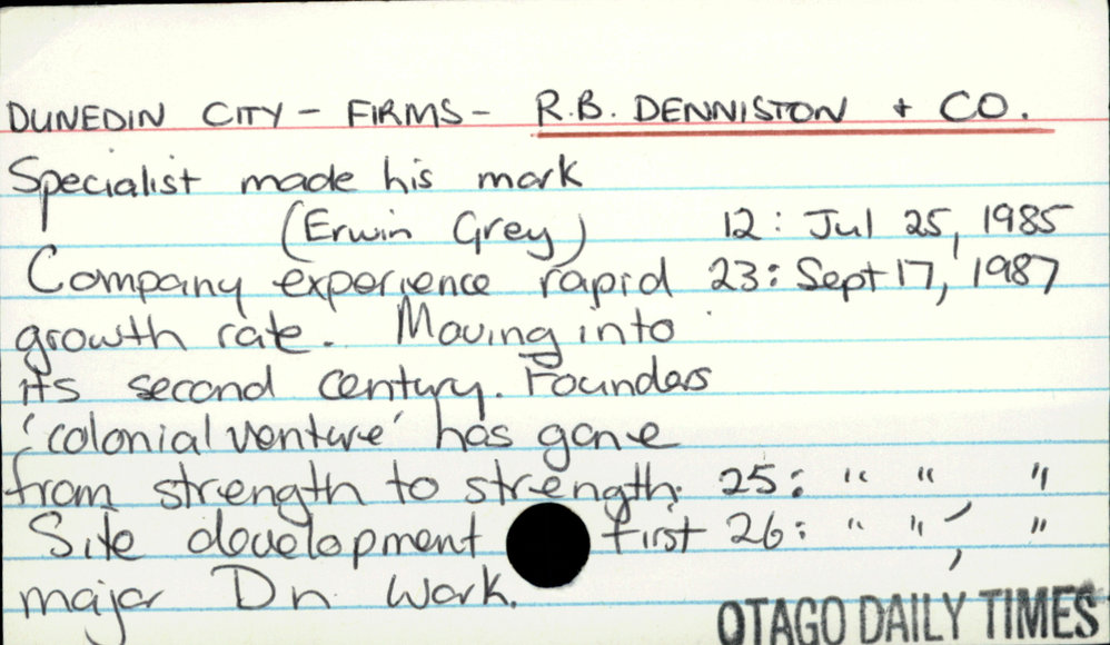 Dunedin Public Libraries (7th Jan 2017). Dunedin City - Firms - R. B. Denniston & Co Ltd. In Website Dunedin Public Libraries. Retrieved 2nd Apr 2026 14:14, from https://dunedin.recollect.co.nz/nodes/view/48578