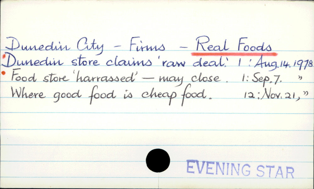 Dunedin Public Libraries (6th Jan 2017). Dunedin City - Firms - Real Foods. In Website Dunedin Public Libraries. Retrieved 2nd Apr 2026 14:11, from https://dunedin.recollect.co.nz/nodes/view/48581
