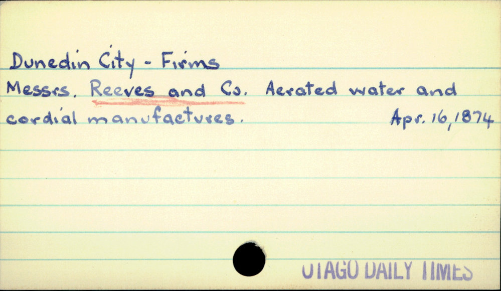 Dunedin Public Libraries (7th Jan 2017). Dunedin City - Firms - Reeves and Co.. In Website Dunedin Public Libraries. Retrieved 2nd Apr 2026 14:10, from https://dunedin.recollect.co.nz/nodes/view/48587