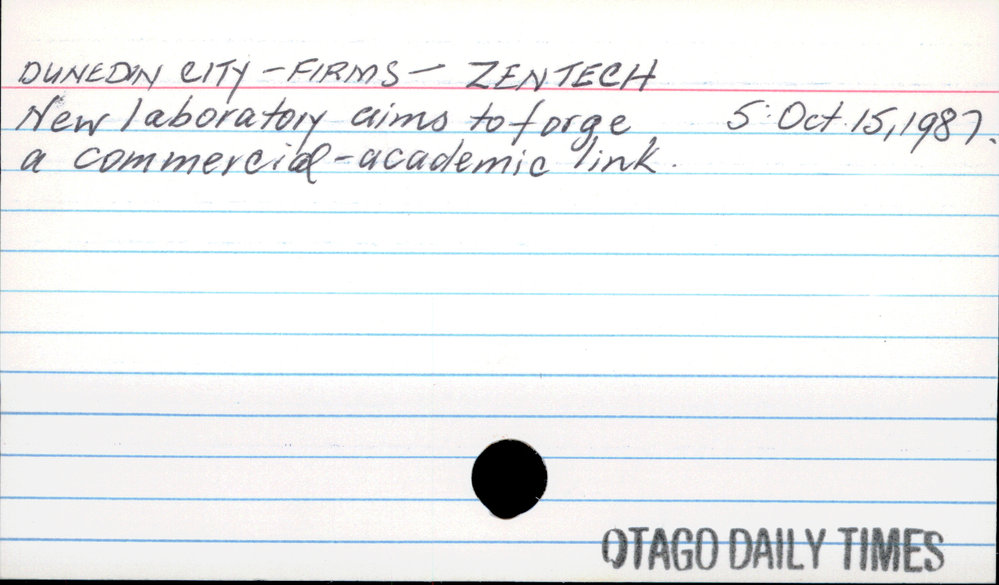 Dunedin Public Libraries (27th Jan 2017). DUNEDIN CITY - FIRMS - ZENTECH. In Website Dunedin Public Libraries. Retrieved 24th Apr 2026 02:14, from https://dunedin.recollect.co.nz/nodes/view/49320