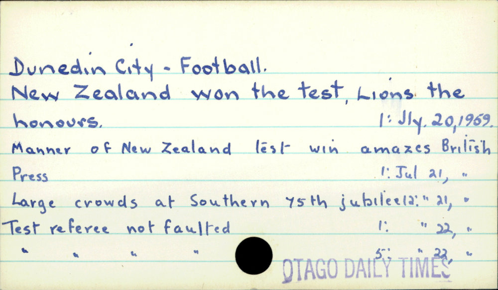 Dunedin Public Libraries (20th Jan 2017). Dunedin City - Football. In Website Dunedin Public Libraries. Retrieved 27th Mar 2026 15:06, from https://dunedin.recollect.co.nz/nodes/view/49584