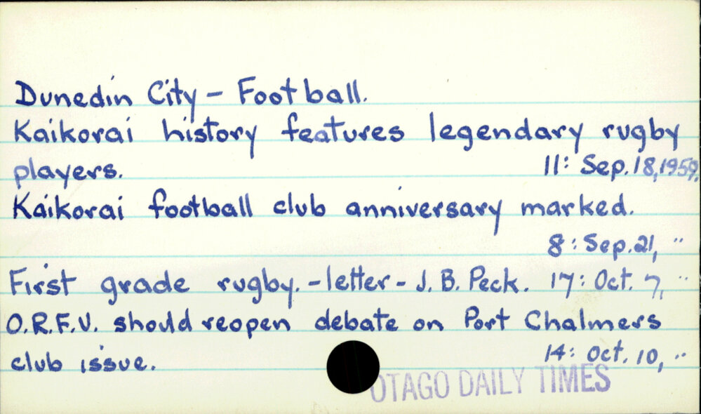 Dunedin Public Libraries (20th Jan 2017). Dunedin City - Football. In Website Dunedin Public Libraries. Retrieved 27th Mar 2026 15:11, from https://dunedin.recollect.co.nz/nodes/view/49586