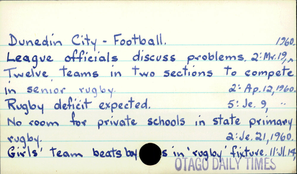 Dunedin Public Libraries (20th Jan 2017). Dunedin City - Football. In Website Dunedin Public Libraries. Retrieved 27th Mar 2026 15:11, from https://dunedin.recollect.co.nz/nodes/view/49588