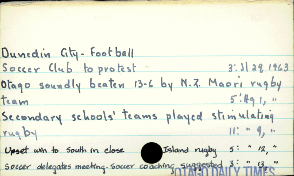 Dunedin Public Libraries (20th Jan 2017). Dunedin City - Football. In Website Dunedin Public Libraries. Retrieved 27th Mar 2026 15:05, from https://dunedin.recollect.co.nz/nodes/view/49600
