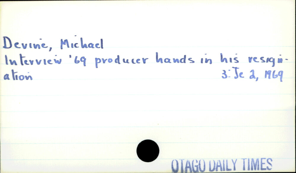 Dunedin Public Libraries (6th Aug 2019). Devine, Michael. In Website Dunedin Public Libraries. Retrieved 4th Apr 2026 22:47, from https://dunedin.recollect.co.nz/nodes/view/50482