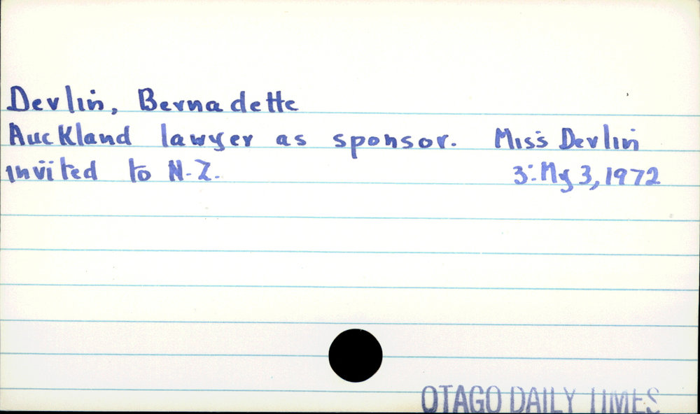 Dunedin Public Libraries (6th Aug 2019). Devlin, Bernadette. In Website Dunedin Public Libraries. Retrieved 4th Apr 2026 22:48, from https://dunedin.recollect.co.nz/nodes/view/50491