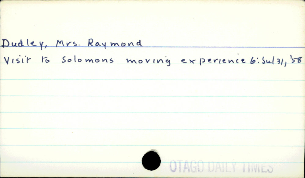 Dunedin Public Libraries (31st Aug 2019). Dudley, Mrs. Raymond. In Website Dunedin Public Libraries. Retrieved 5th Apr 2026 02:38, from https://dunedin.recollect.co.nz/nodes/view/53175