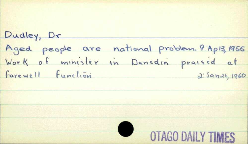 Dunedin Public Libraries (1st Sep 2019). Dudley, Dr. In Website Dunedin Public Libraries. Retrieved 5th Apr 2026 02:38, from https://dunedin.recollect.co.nz/nodes/view/53181