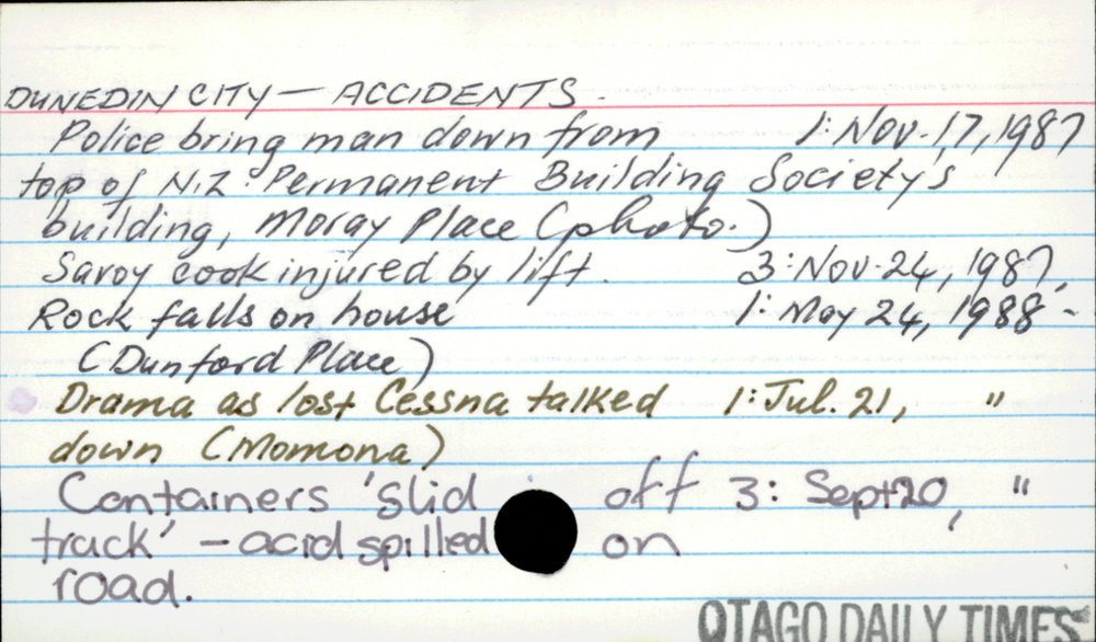 Dunedin Public Libraries (3rd Jun 2016). DUNEDIN CITY - ACCIDENTS. In Website Dunedin Public Libraries. Retrieved 2nd Apr 2026 14:16, from https://dunedin.recollect.co.nz/nodes/view/54120