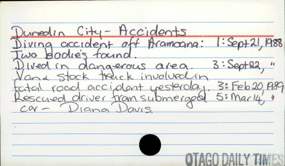 Dunedin Public Libraries (3rd Jun 2016). Dunedin City - Accidents. In Website Dunedin Public Libraries. Retrieved 2nd Apr 2026 14:22, from https://dunedin.recollect.co.nz/nodes/view/54121