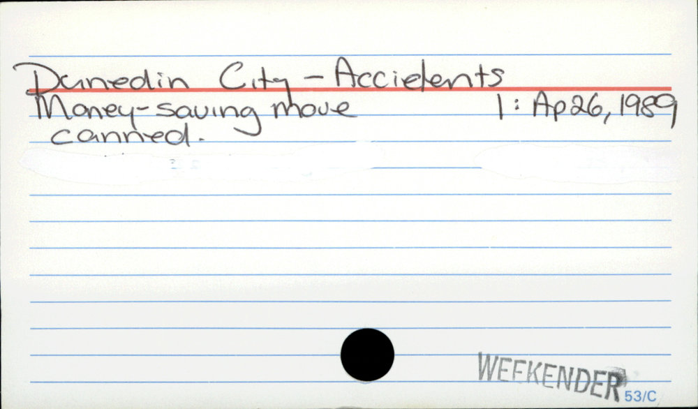 Dunedin Public Libraries (3rd Jun 2016). Dunedin City - Accidents. In Website Dunedin Public Libraries. Retrieved 2nd Apr 2026 14:11, from https://dunedin.recollect.co.nz/nodes/view/54122