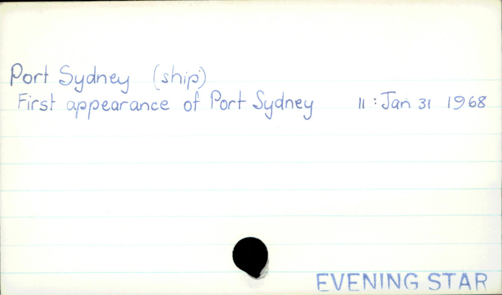 Dunedin Public Libraries (6th Jan 2022). Port Sydney (ship). In Website Dunedin Public Libraries. Retrieved 3rd Apr 2026 18:56, from https://dunedin.recollect.co.nz/nodes/view/55782