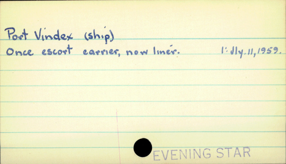 Dunedin Public Libraries (6th Jan 2022). Port Vindex (ship). In Website Dunedin Public Libraries. Retrieved 3rd Apr 2026 18:56, from https://dunedin.recollect.co.nz/nodes/view/55787
