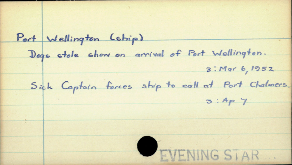 Dunedin Public Libraries (13th Jan 2022). Port Wellington (ship). In Website Dunedin Public Libraries. Retrieved 3rd Apr 2026 18:56, from https://dunedin.recollect.co.nz/nodes/view/55794