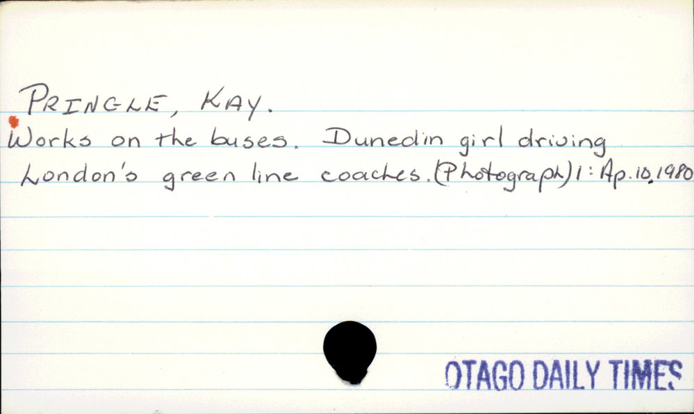 Dunedin Public Libraries (25th Jan 2022). PRINGLE, KAY. In Website Dunedin Public Libraries. Retrieved 4th Apr 2026 10:50, from https://dunedin.recollect.co.nz/nodes/view/57368