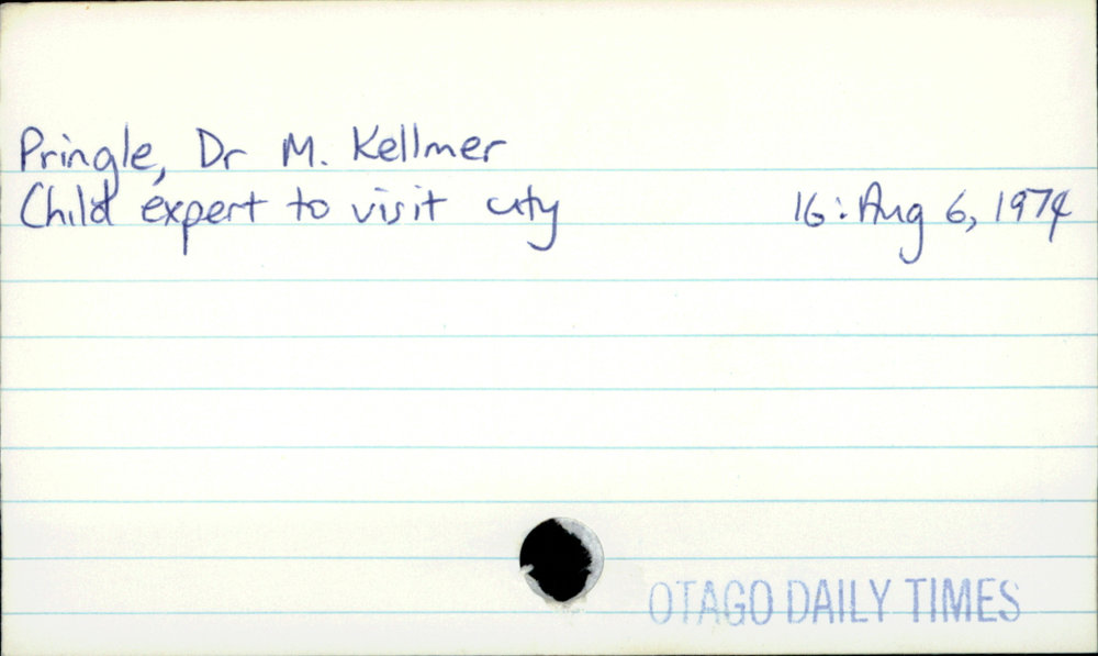 Dunedin Public Libraries (25th Jan 2022). Pringle, Dr M. Kellmer. In Website Dunedin Public Libraries. Retrieved 4th Apr 2026 10:50, from https://dunedin.recollect.co.nz/nodes/view/57371