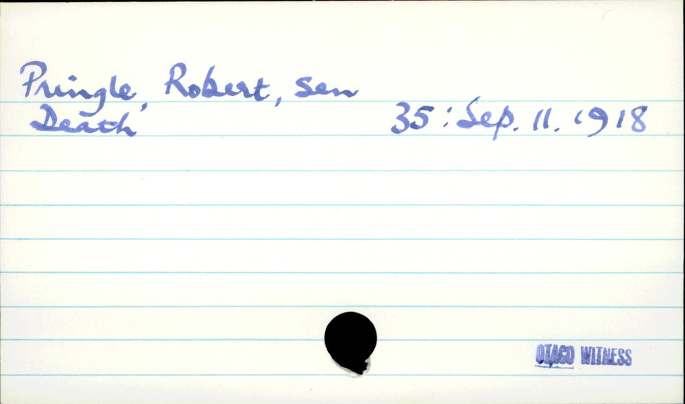 Dunedin Public Libraries (25th Jan 2022). Pringle, Robert, Sen. In Website Dunedin Public Libraries. Retrieved 4th Apr 2026 10:51, from https://dunedin.recollect.co.nz/nodes/view/57373